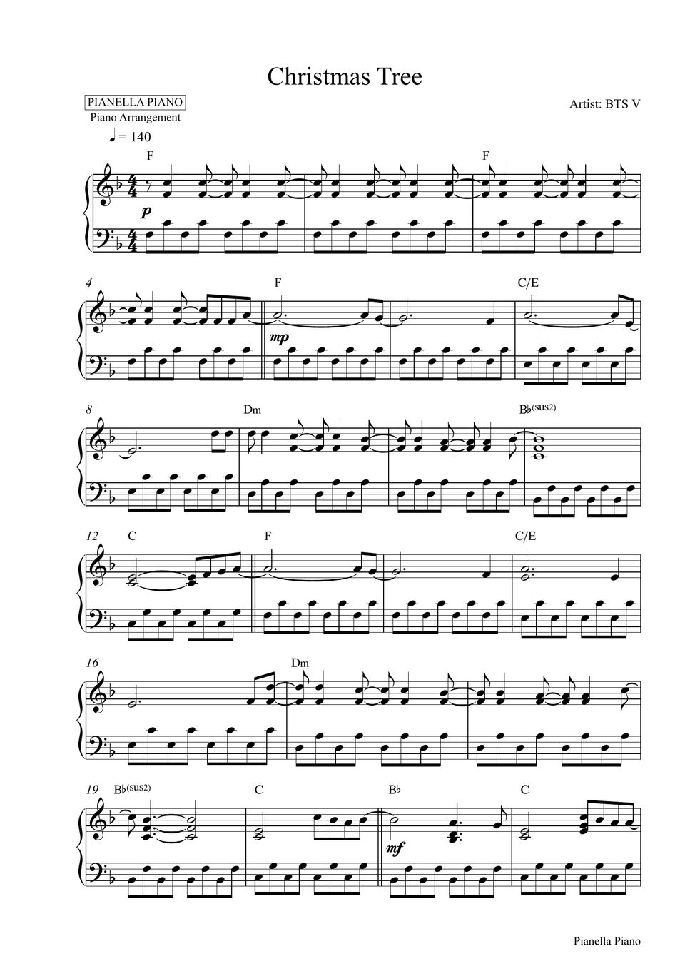 BTS V Christmas Tree (Piano Sheet) 악보 by Pianella Piano